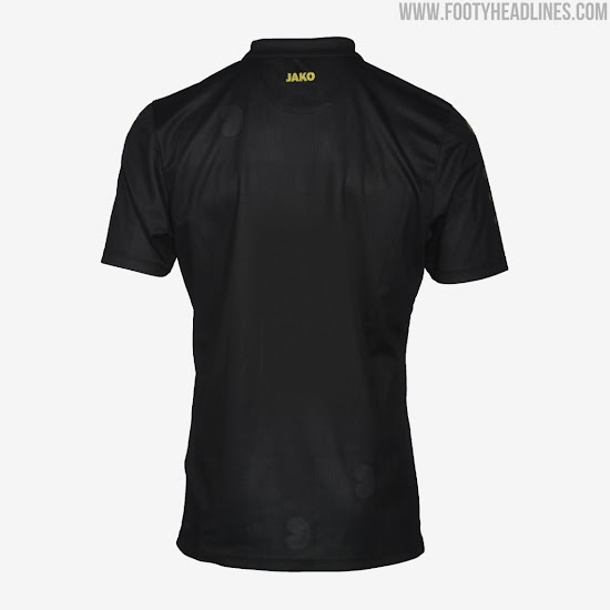 Das Jako SC Heerenveen 2020-2021 Fussballtrikot ist schwarz mit vollkommen goldenen Logos, einschließlich eines einfarbigen Vereinswappens auf der linken Brust.