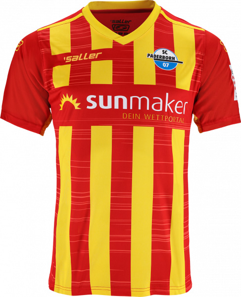 Das Saller SC Paderborn 20-21 Trikot setzt auf einen klassischeren Look des Klubs mit regelmäßigen vertikalen Streifen, jedoch in einer sehr auffälligen Farbkombination: Gelb & Rot. Diese Farbkombination ist tatsächlich an das Paderborner Stadtwappen angelehnt. Ansonsten basiert das zweite neue SC Paderborn 2020-21 Trikot auf derselben Vorlage wie das Heimtrikot.