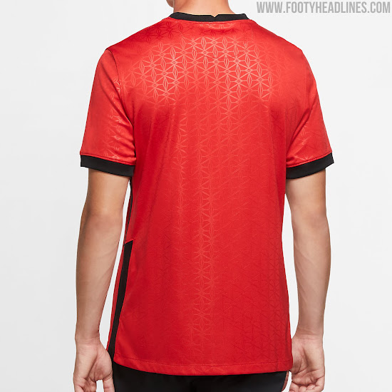 Das Nike Spartak Moskau 2020-2021 Trikot kombiniert das typische Design des Vereins - ein rotes Trikot mit einem weißen Band um die Brust - mit einem allumfassenden Jacquard-Druck.