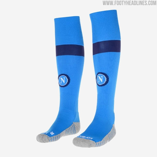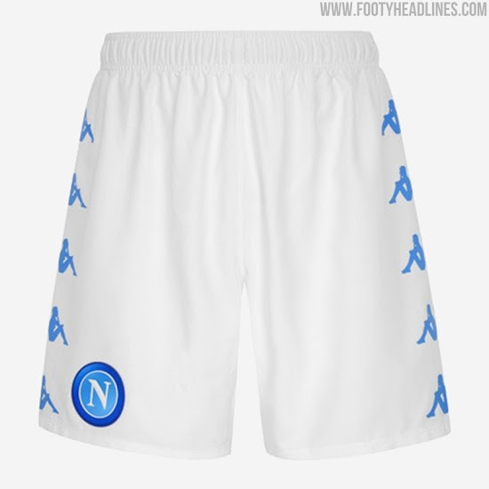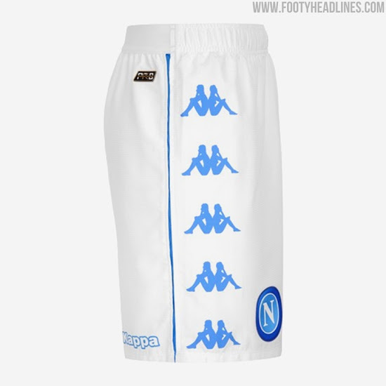 Die Hosen des Napoli 20-21 Trikots sind weiß, während die Stutzen himmelblau sind.