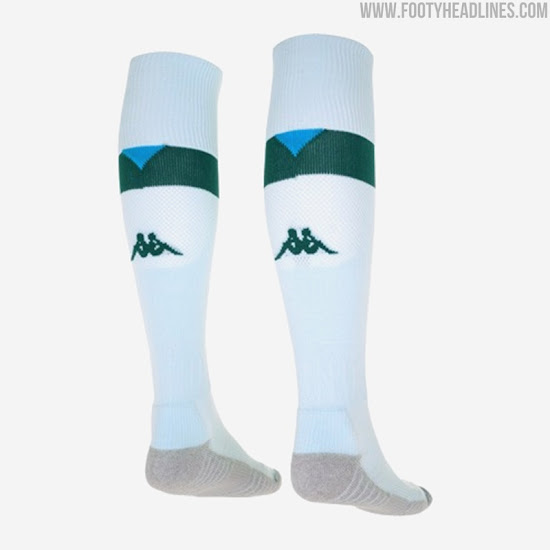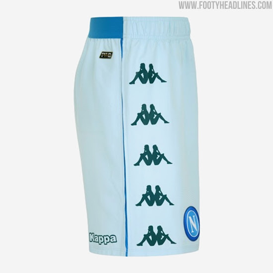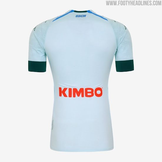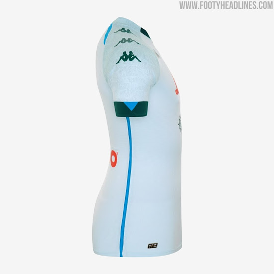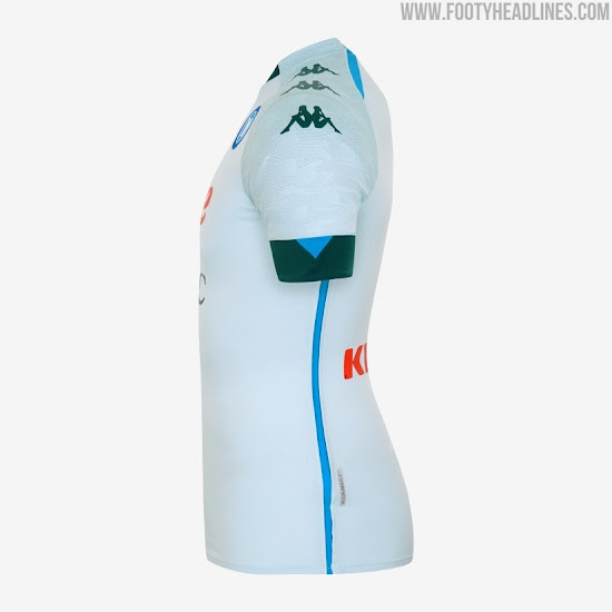 Das zweite Kappa SSC Neapel 20-21 Trikot, das eine interessante Farbkombination hat, ist in einem blassen Blau und Grün gehalten.