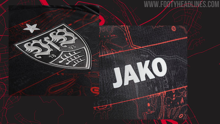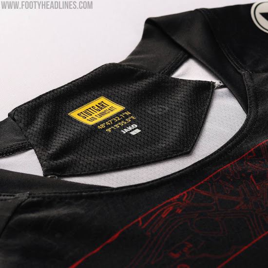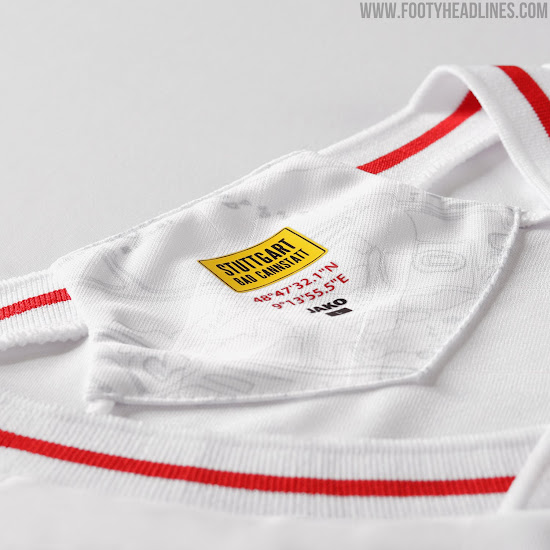 Beide Trikots beziehen sich auf VfB Stuttgarts Heimat Bad Cannstatt, wobei sich das Namensschild und die Koordinaten im Nacken befinden.