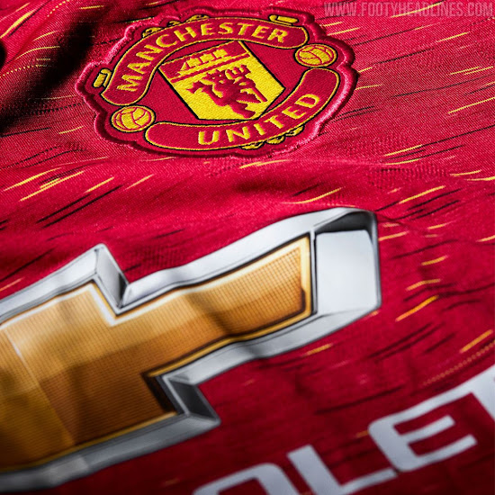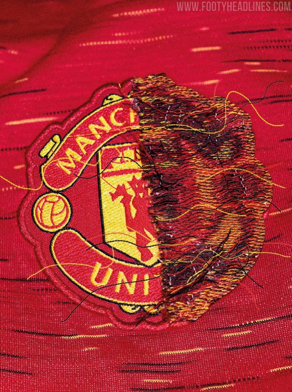 Das subtile Stoffdesign des neuen Man Utd 20-21 Trikots "nimmt Einfluss von den Feinheiten der auf das Trikot genähten Applikation aus Garn".