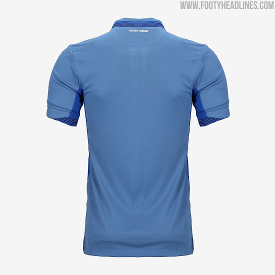 Das dritte Joma Atalanta 2020-2021 Fussballtrikot führt einen einzigartigen Look in einem helleren Blauton mit einem schwarz-blauen Band auf der Brust sowie einem geprägten Druck der Fassade der neuen "Pisani"-Nordkurve des Gewiss Stadium ein.