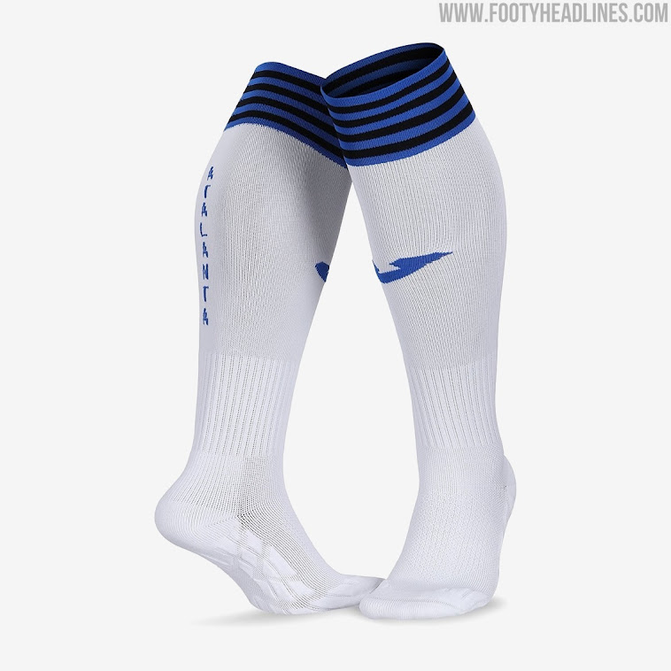 Weiße Hosen und Stutzen komplettieren das neue Joma Atalanta 2020-2021 Trikot.