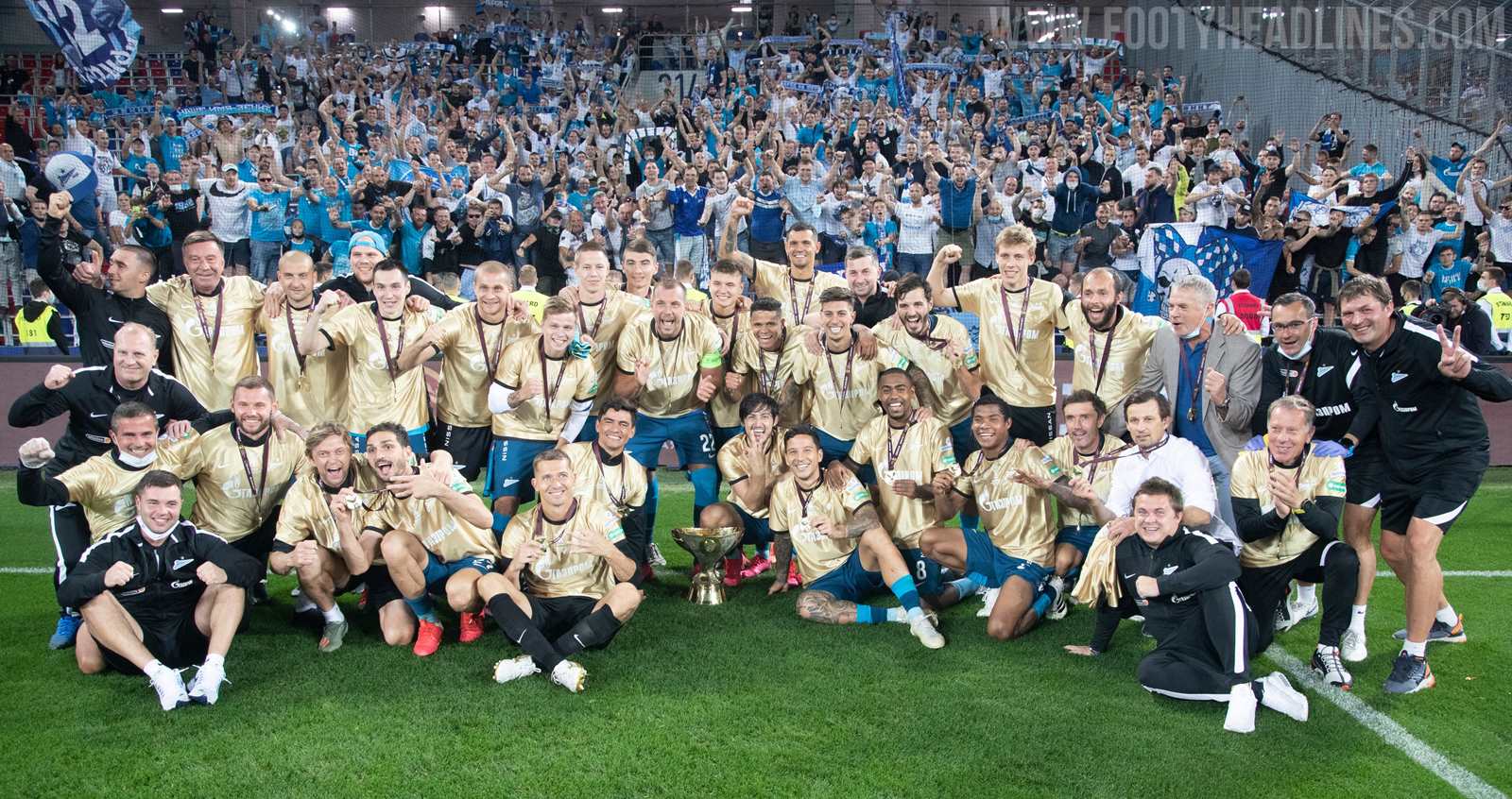 Nachdem Zenit während des Spiels das atemberaubende neue 2020-21 Heimtrikot vorgestellt hatte, blieb man auch danach den Vereinstraditionen treu und erhielt die Trophäe für den russischen Super Cup 2020 in glänzenden goldenen Nike Sondertrikots.