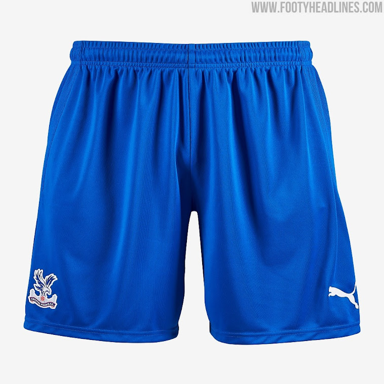Weiß-blaue Hosen und weiß-rot-blaue Stutzen vervollständigen das neue Puma Crystal Palace 20-21 Trikot.