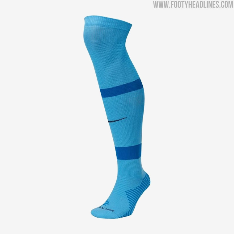 Dunkelblaue Hosen und blaue Stutzen vervollständigen das neue Nike FC Utrecht 2020-21 Trikot.