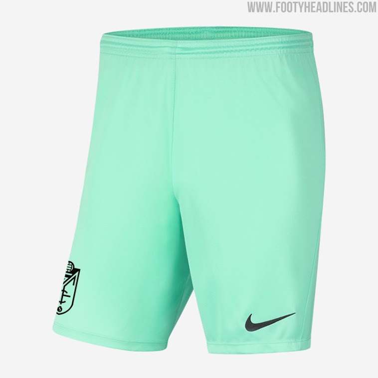 Türkise Hosen und leuchtend gelbe Stutzen runden den Look des neuen Granada 2020-2021 Trikots von Nike ab.