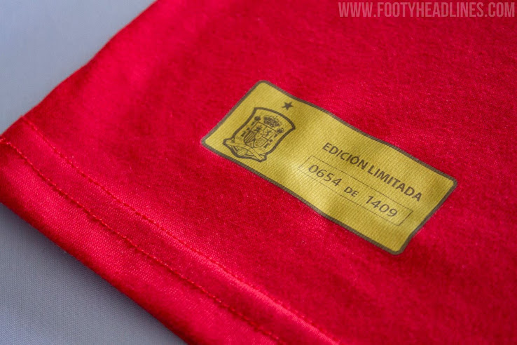 Das neue Spanien Jahrhundert-Trikot ist auf 1.409 Stück limitiert, was von der Anzahl der Tore abgeleitet ist, die die Nationalmannschaft bisher erzielt hat.