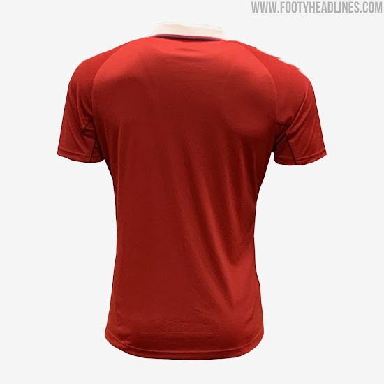 Das Hummel Middlesbrough FC 2020-21 Trikot im altmodisch angehauchten Design ist rot mit einem Kragen aus den 1990er Jahren, der überwiegend weiß ist, aber auch marineblaue Details aufweist.