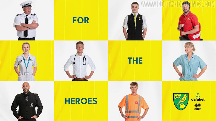 Norwich City und Errea haben heute das neue Norwich City 20-21 Trikot vorgestellt. Das Launch-Video und die Kampagne des Norwich City 20-21 Trikots erweisen den Helden der COVID-19-Pandemie Ehre - das Trikot selbst zollt keine Anerkennung.