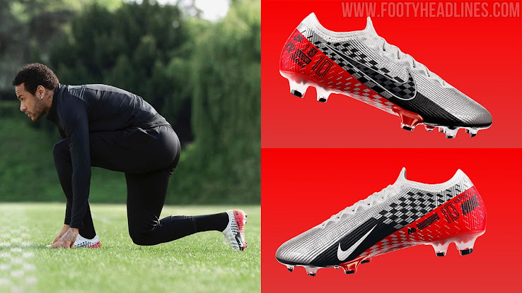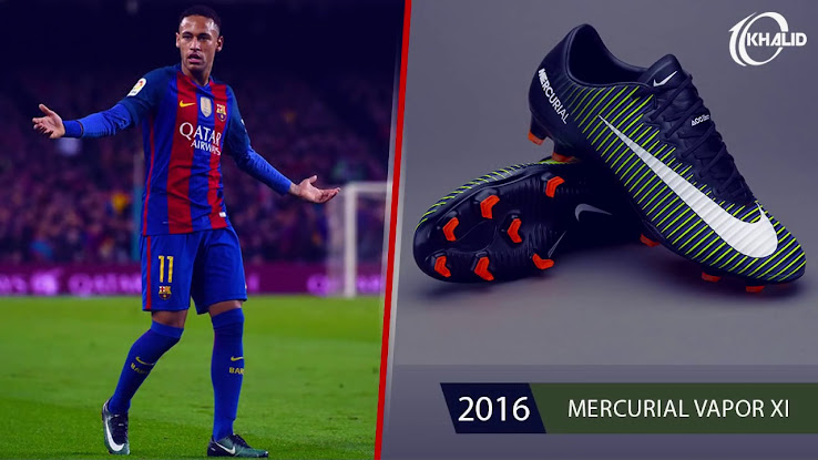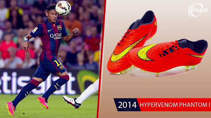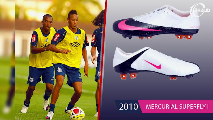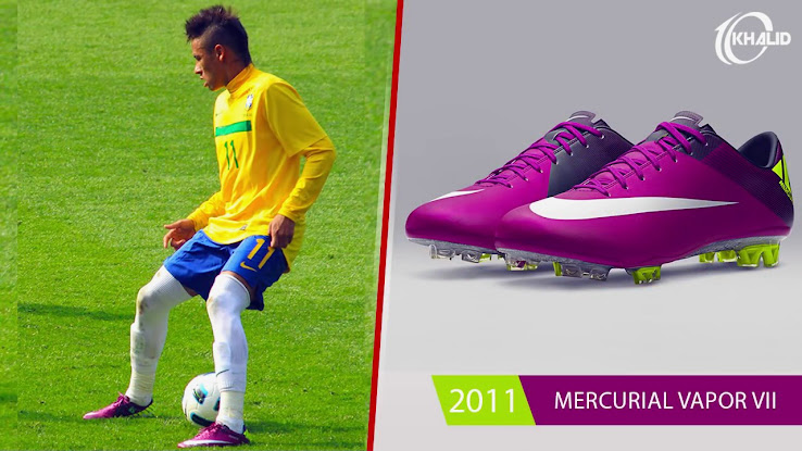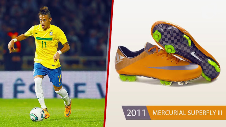 Neymar trug während seines ganzen Lebens (seit er von Nike gesponsert wurde) hauptsächlich die Nike Mercurial Fußballschuhe, mit zwei Ausnahmen - 2008 lief er in den Nike Air Zoom Total 90 Laser Schuhen auf, und zwischen Sommer 2013 und Winter 2016 trug er den Nike Hypervenom.