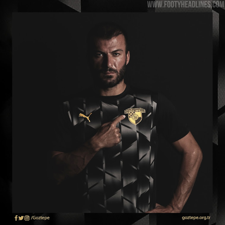 Das zweite Puma Göztepe Spor Kulübü 2020-2021 Trikot ist mit einem atemberaubenden Design in Schwarz und Gold ausgestattet.