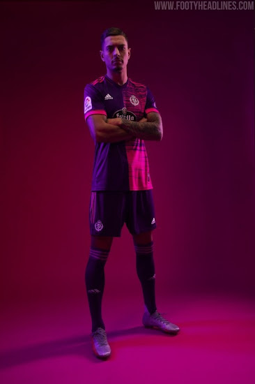Das Adidas Valladolid 2020-2021 Fussballtrikot kombiniert eine marineblaue Grundfarbe mit rosa-roten Elementen und verleiht dem Klub einen mutigen und frischen Look.