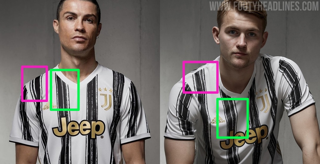 Der Grund dafür, dass die Streifen anders aussehen, liegt darin, wie Adidas sein Trikot produziert. Die Streifen werden nicht für jedes Trikot speziell angefertigt - für das Juventus 2020-21 Trikot wird ein sehr großer Stoff verwendet, auf dem die Streifen bereits aufgebracht sind.