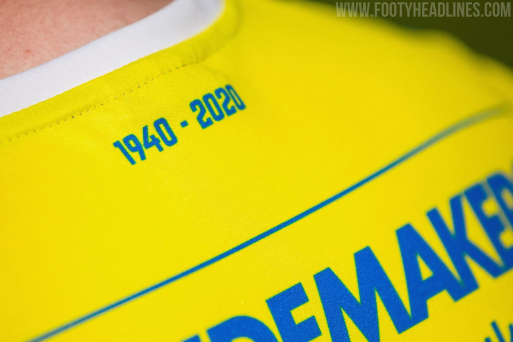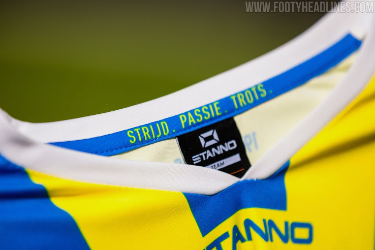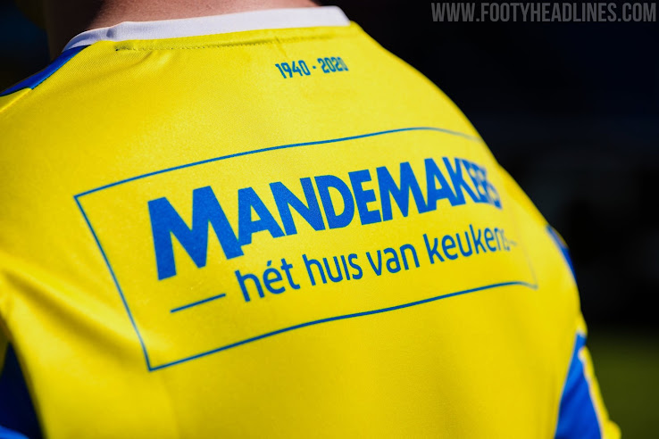 Auf der Vorderseite befindet sich ein gelber Bereich für den Sponsor, während die Rückseite einfarbig gelb ist. Zu den Details gehören der Schriftzug "Strijd, Passie, Trots" (Kampf, Leidenschaft, Stolz) auf der Innenseite des Kragens und eine Erinnerung an das 80-jährige Jubiläum oben auf der Rückseite.