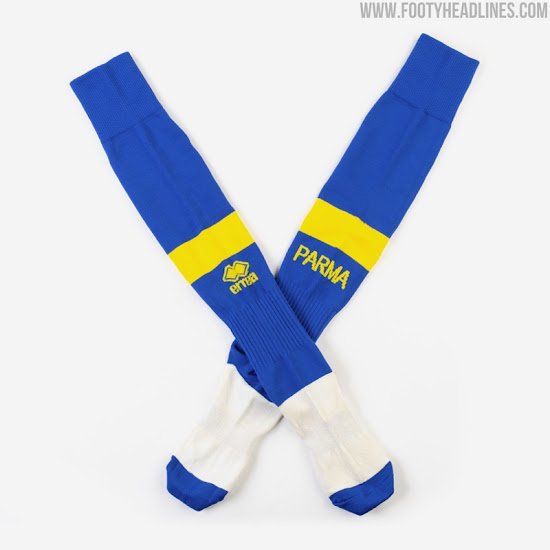 "Die beiden neuen Trikots feiern die historischen Gialloblù-Farben von Parma und teilen sie in zwei Parma Calcio 20-21 Auswärtstrikots, jedes mit seinem eigenen Charakter, wobei jedes als komplementärer Gegensatz zum anderen dient.
