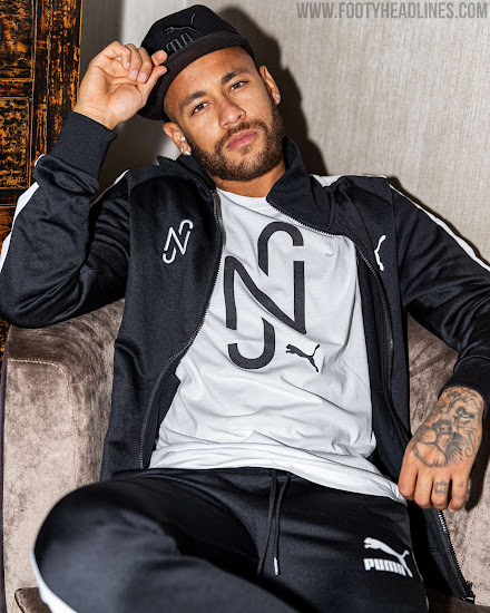 Das neue Puma Neymar Branding ist minimalistisch, aber trickreich gestaltet und besteht aus einem N und den unteren / oberen Teilen seiner Initialen Jr. Rechts unten befindet sich Pumas Logo.