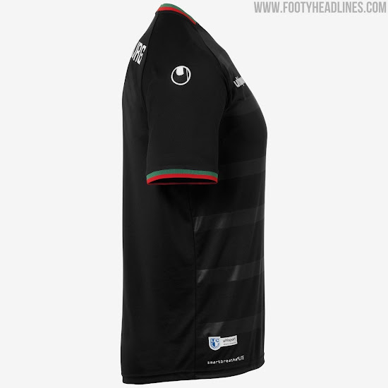 Das Uhlsport Magdeburg 20-21 Fussballtrikot ist hauptsächlich schwarz mit dezenten Querstreifen und grün-weißen Borten an Hals und Ärmelbündchen, um dem Wappen der Stadt fern der Heimat zu huldigen. Interessanterweise bestehen die subtilen Querstreifen teilweise aus der Skyline von Magdeburg, was den maßgeschneiderten Look noch verstärkt.