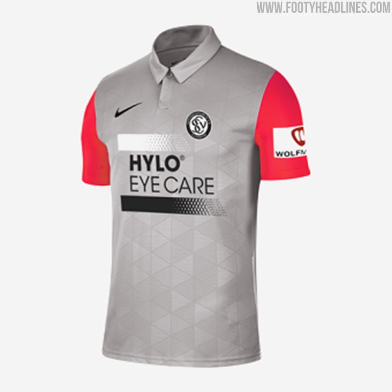 Das dritte Nike SV Elversberg 2020-21, das eine interessante Farbkombination einführt, paart eine graue Grundlage mit auffallend roten Ärmeln und den zwei horizontalen Streifen in weiß bzw. schwarz.