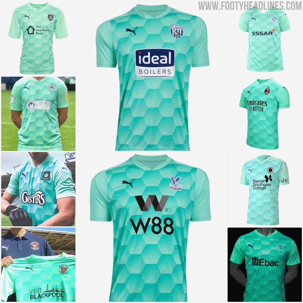 It's being used as a goalkeeper kit for Barnsley, Wigan, Plymouth, Blackpool, West Brom, Crystal Palace, Tranmere and AC Milan. It's also the away kit for Boreham Wood and Darlington.