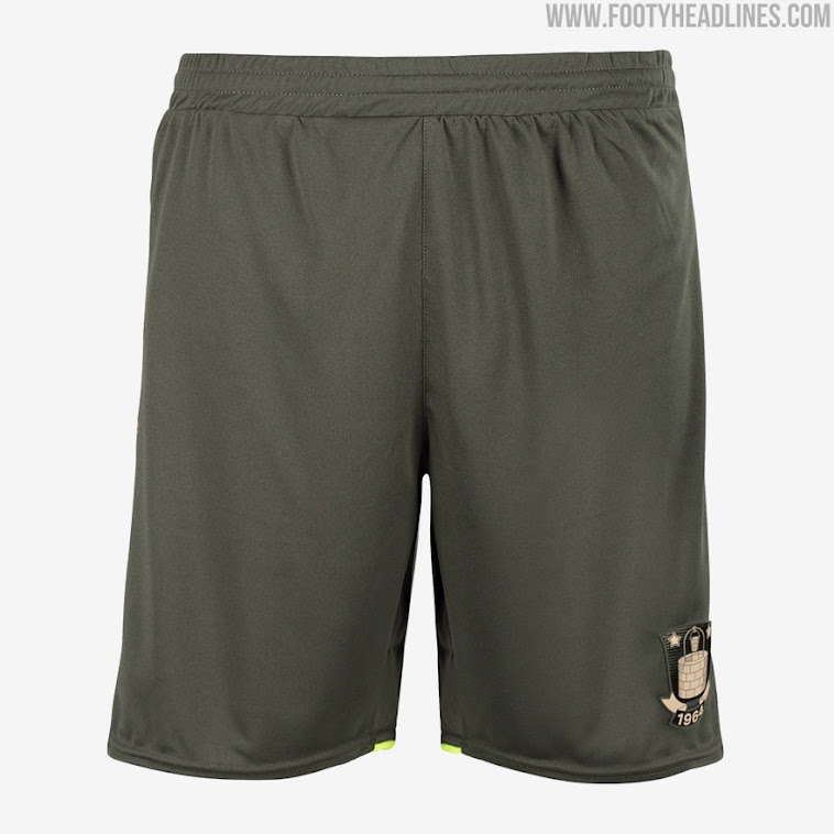Das zweite neue Bröndby IF 2020-2021 Bröndby hat die Grundfarbe "Armeegrün", inspiriert von der "blau-gelben Armee" (den Anhängern des Klubs), kombiniert mit Gold und Limonengrün.
