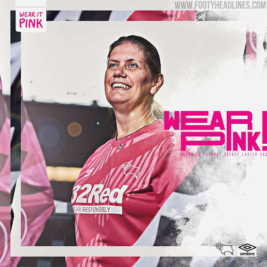 Das 3. Derby County 20-21 Trikot unterstützt die Spendenkampagne von Breast Cancer Now. Der Oktober ist der Brustkrebs-Aufklärungsmonat, und im Laufe des Monats haben sich Derby County und Umbro zusammengetan, um 5 Pfund aus dem vollen Verkaufspreis jedes Ausweich-Shirts für Erwachsene und 3 Pfund aus dem Verkauf jedes Ausweich-Shirts für Kinder an Breast Cancer Now zu spenden.