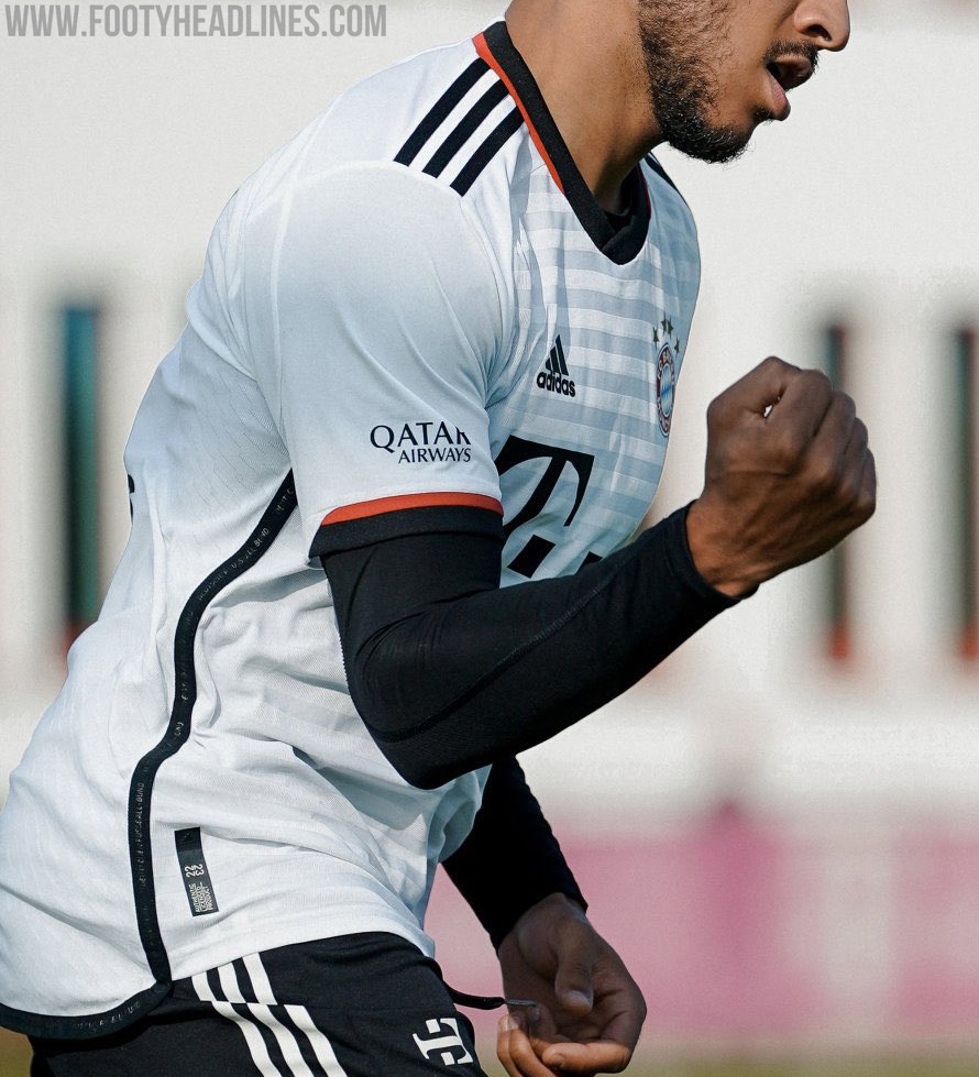 Das ist ziemlich interessant, denn gerade am Montag zeigten Bilder vom Bayern-Training ein mysteriöses eisfarbenes "Trikot 2022/23" mit schwarzen und roten Applikationen - könnte es sich um Flamengos Trikot handeln?