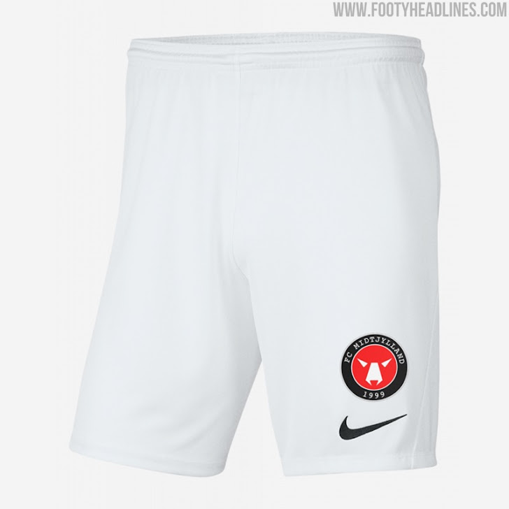 Nike kombiniert das Midtjylland 2020-21 Trikot mit schlichten weißen Hosen und weißen Stutzen.