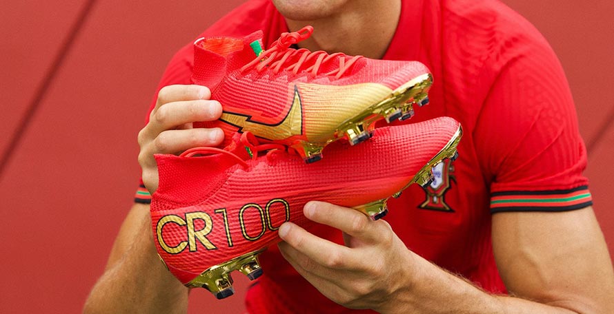 Cristiano Ronaldo enthüllte gestern ein besonderes Paar der Nike Mercurial Schuhe, um seine 100 Tore für Portugal zu feiern, die CR7 erst letzten Monat in der UEFA Nations League gegen Schweden erreichte.