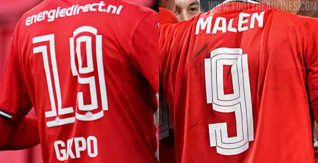 Die PSV Eindhoven 20-21 Trikots sind mit einer brandneuen Trikot-Schrift ausgestattet, die einen bemerkenswerten Stil aus getrennten Linien aufweist. Die PSV 20-21 Trikot-Schrift verstößt jedoch gegen die UEFA-Regeln über die Linienstärke von Trikot-Schriften und musste daher geändert werden.