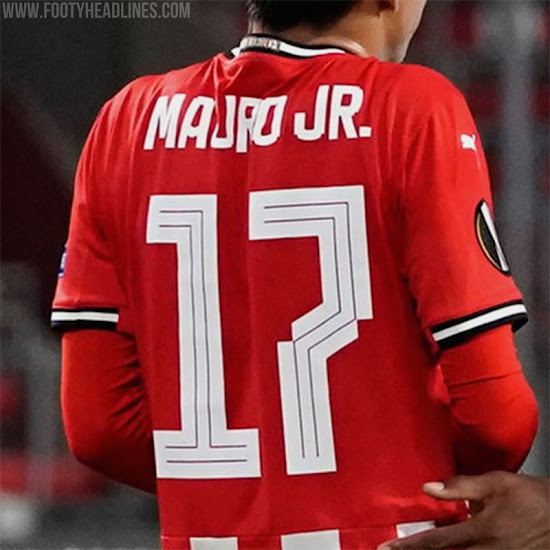 Im Anschluss an unseren Bericht über Real Madrid, die in der UEFA Champions League eine modifizierte Trikot-Schriftart trugen, machte uns ein Follower darauf aufmerksam, dass auch die niederländische Mannschaft Eindhoven ihre Trikot-Schriftart aktualisieren musste, um den UEFA-Ausrüstungsvorschriften zu entsprechen.