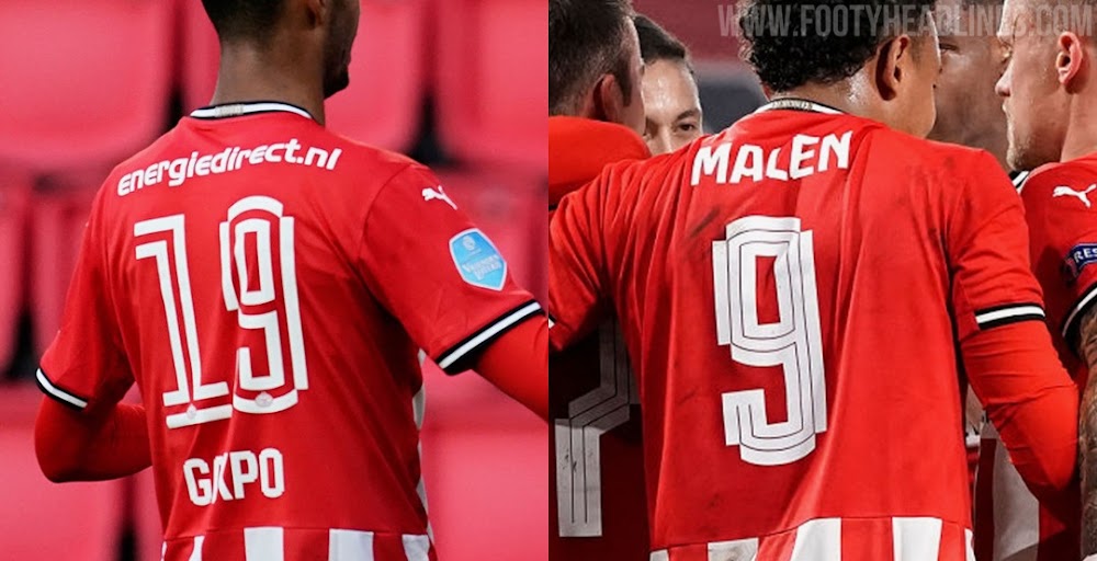 Die PSV Eindhoven 20-21 Trikots sind mit einer brandneuen Trikot-Schrift ausgestattet, die einen bemerkenswerten Stil aus getrennten Linien aufweist. Die PSV 20-21 Trikot-Schrift verstößt jedoch gegen die UEFA-Regeln über die Linienstärke von Trikot-Schriften und musste daher geändert werden.