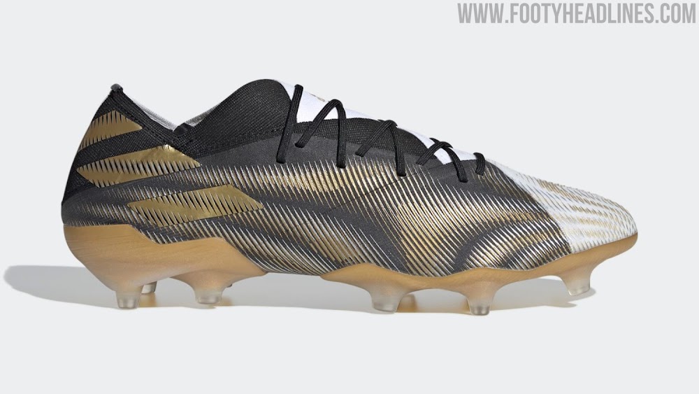 Die neuen schwarz-weiss-goldenen Adidas Nemeziz 19.1 Fussballschuhe sind Teil des "Atmospheric Pack". Das Atmospheric-Pack enthält ausschließlich High-End-Versionen des Nemeziz, Predator und X (kein Copa).