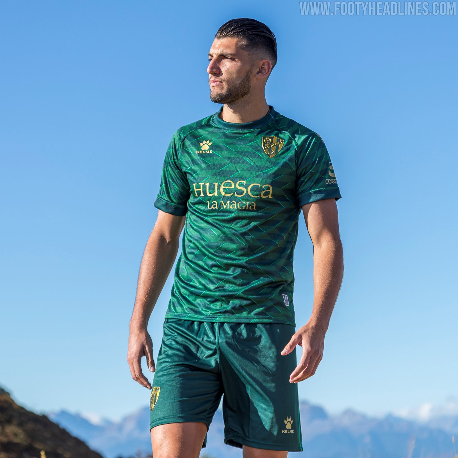 Huescas gesamtzer Satz ist in dieser Saison ausgezeichnet und die edle Kombination von Grün und Goldmetallic des Ausweichtrikots ist ein Siegerkandidat.