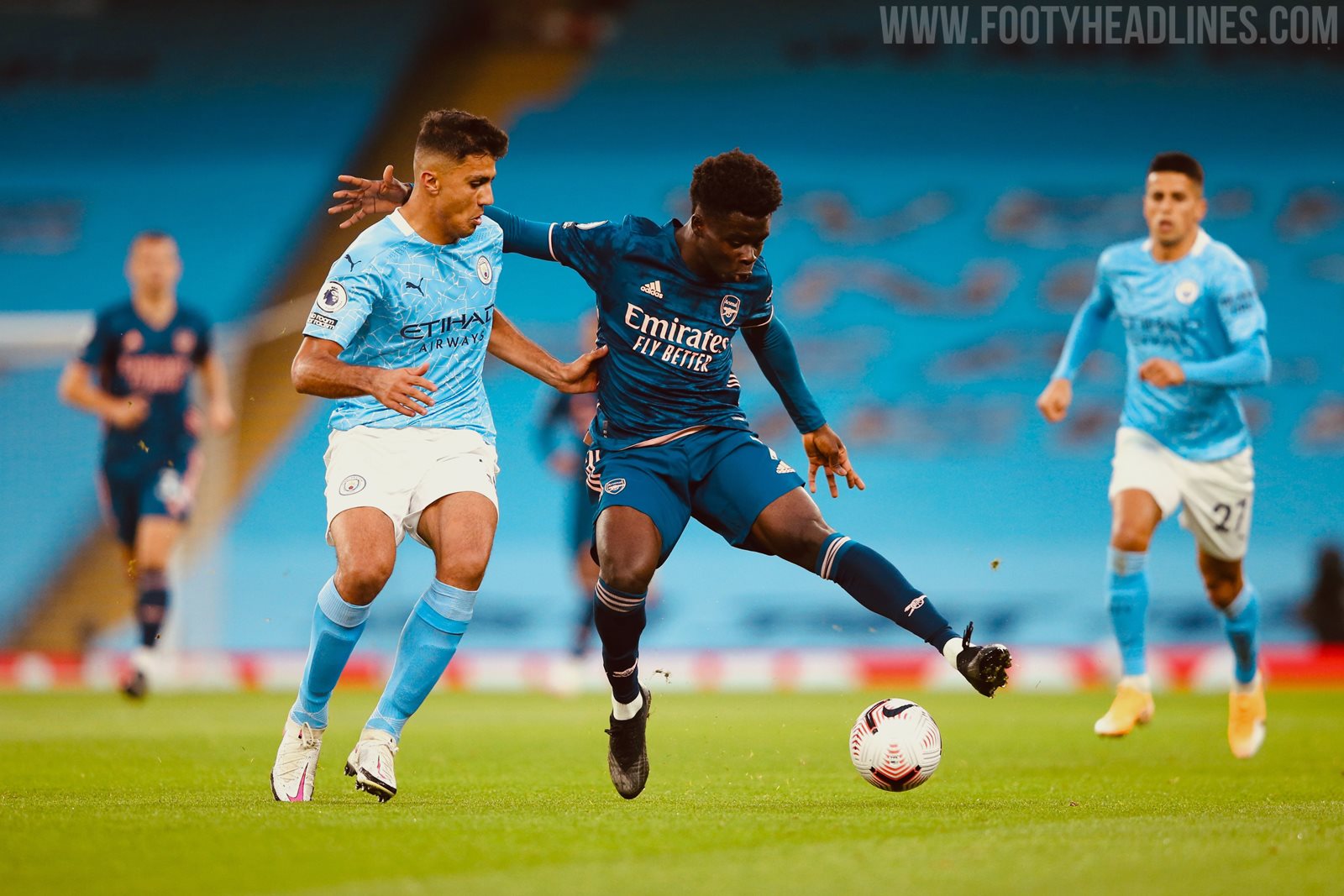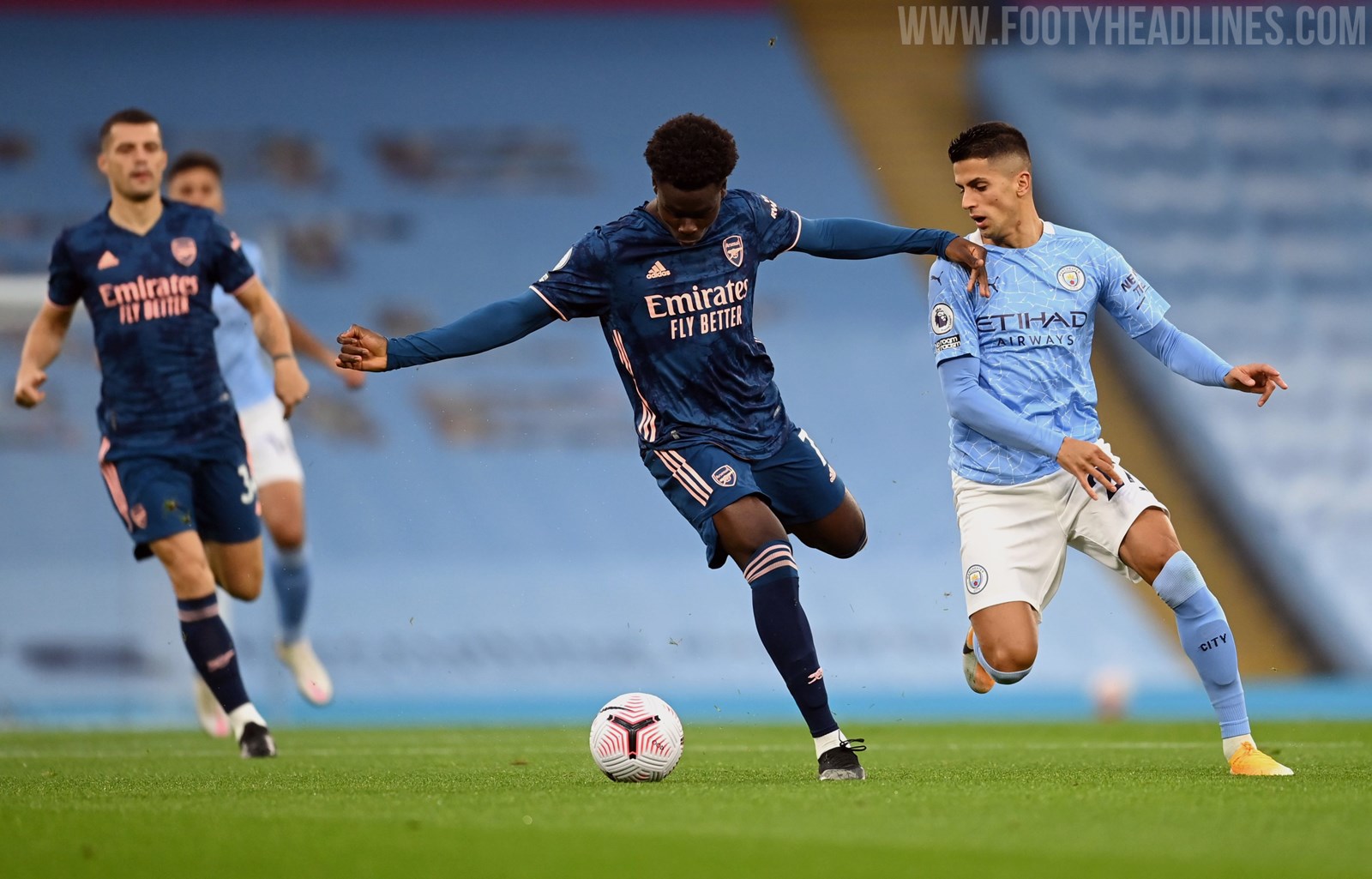 Arsenal trägt Dunkelblaues Ausweich-Shirt auswärts gegen Manchester City