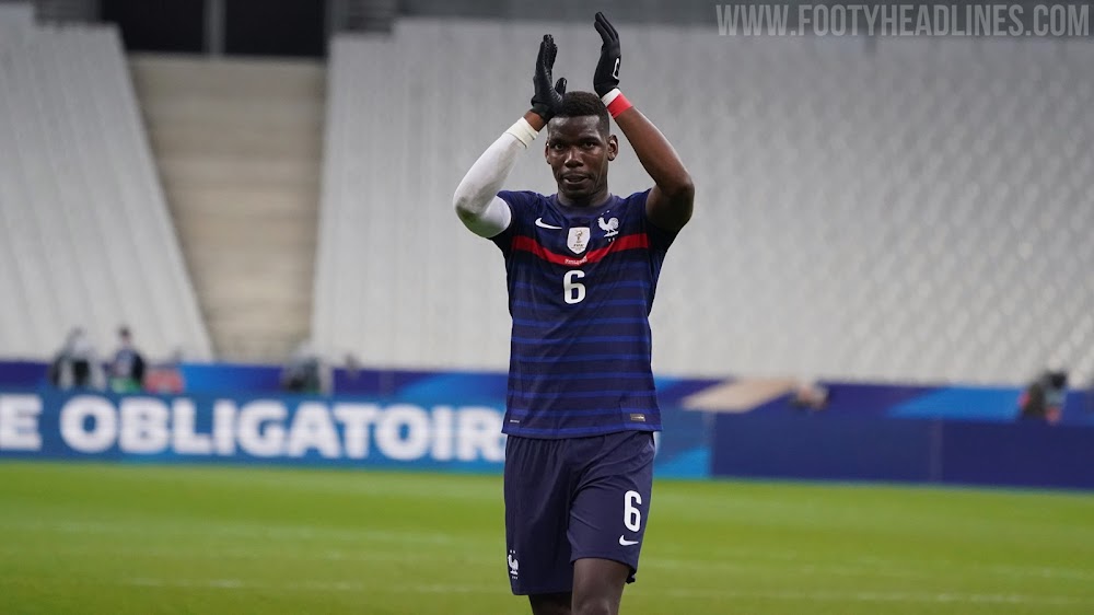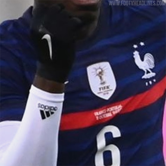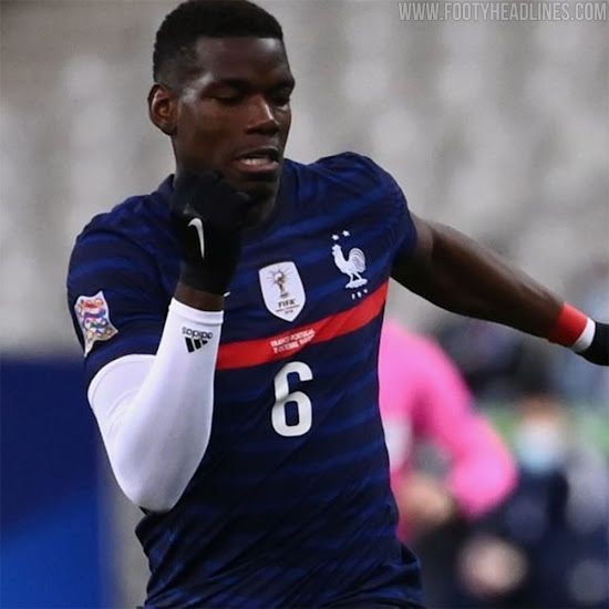 Paul Pogba trug im Spiel gegen die Ukraine einen marineblauen Ärmel und gegen Portugal einen weißen Ärmel mit dem Adidas-Logo.