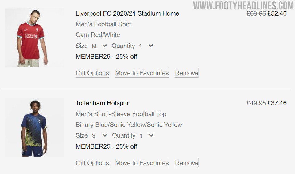 Zum Beispiel kannst du das Nike Liverpool FC 2020/21 Stadium Heim Trikot für 52,46 (statt 69,95) und die Spurs 20-21 Pre-Match für 37,46 (statt 49,95) bekommen. Alle Fußballschuhe sind ebenfalls mit 25% Rabatt erhältlich, einschließlich der neuesten Versionen.