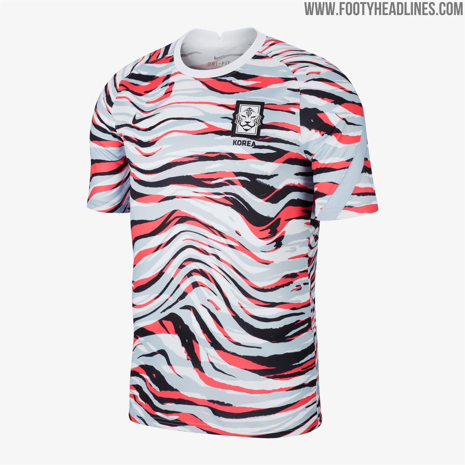 Das Nike-Fußballtrikot für Südkorea 2020 vor dem Spiel hat einen einzigartigen und mutigen Look. Ähnlich wie das Auswärtstrikot hat das Nike Südkorea 2020 Trikot vor dem Spiel einen modernen und einzigartigen überlappenden Tigerstreifen-Look.