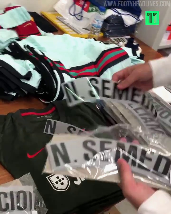 Das Video zeigt, wie die Nike Portugal 2020 Trikots für das Internationale Freundschaftsspiel Portugals gegen Andorra am 11. November im Estadio Da Luz vorbereitet werden. Es zeigt auch, dass der Trikotmann viele verschiedene Trikots zur Auswahl hat, sowie einen Stapel Standard Nike Schuhe.