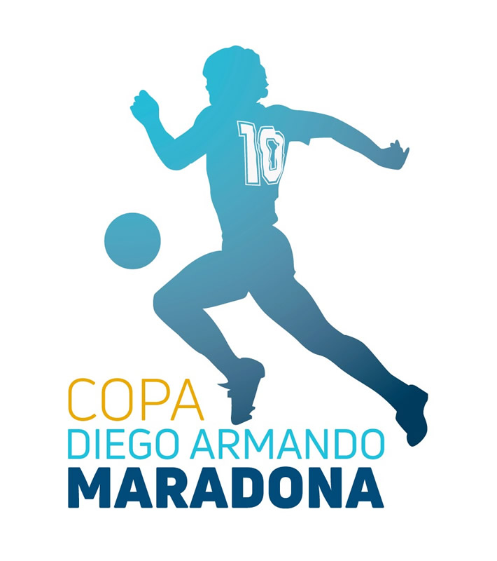 Ein modernes Design, das brandneue Copa Diego Maradona Logo kommt mit einer Silhouette von Maradona Dribbling und dem Schriftzug "Copa Diego Armando Maradona".