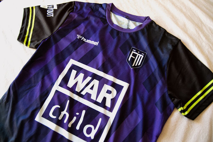Auf der linken Brust befindet sich das FMFC-Logo, während das Hummel-Logo auf der rechten Brust sitzt. Die langjährigen Football Manager Charity-Partner War Child und Kick It Out befinden sich auf der Vorderseite/Ärmel.