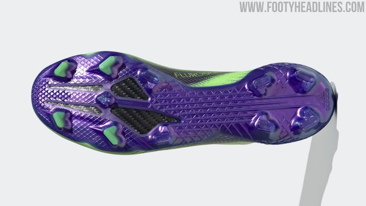 Das adidas X Ghosted 'Signalgrün' führt ein kühnes Design ein. Sie sind überwiegend 'signalgrün' mit violetten 3 Streifen und einer violetten Sohlenplatte.