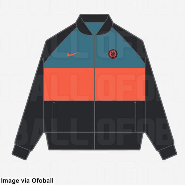 Chelseas Champions League Kollektion 2021-2022 weist ein Thema auf, das sich in allen Artikeln wiederfindet: Das verbindende Element ist die Kombination der drei Farben Teal, Schwarz und Orange.