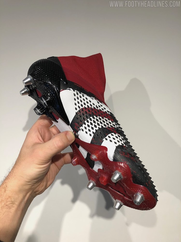 Die Soft Ground Version der Adidas Predator Humanrace Fußballschuhe wurde von tootsbootsuk, der "UK's #1 Award Winning Professional Football Boot Customisation", in Handarbeit hergestellt. Sie entfernten sechs der FG-Fußballschuhe und ersetzten sie durch SG-Fußballschuhe.