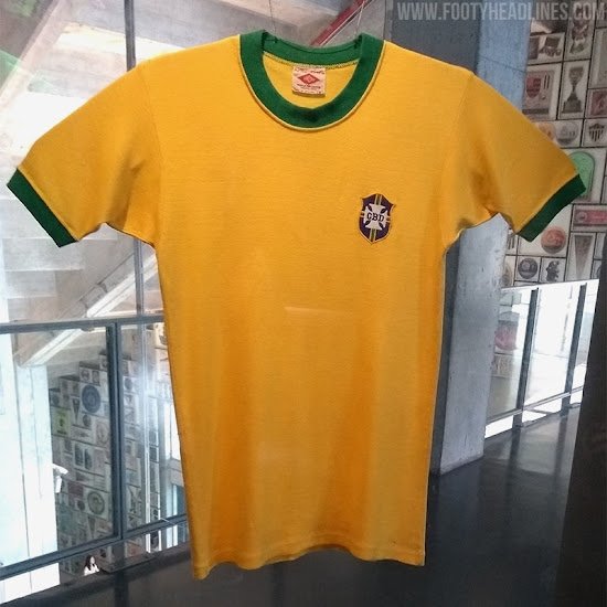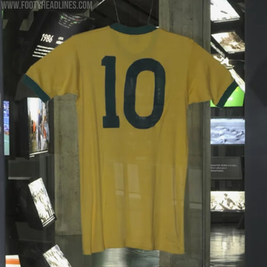 Auf dem von Pel getragenen Trikot, das im Museu do Futebol im Pacaembu-Stadion in So Paulo ausgestellt ist, ist das Etikett von Umbro zu sehen, zusammen mit der Nummer im runden Stil.