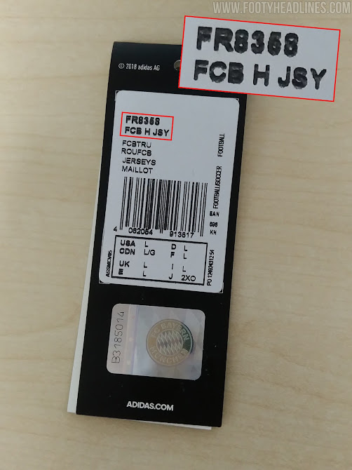 Hier haben wir zum Beispiel ein Etikett des Bayern 20-21 Heimtrikots - mit der SKU FR8358.
