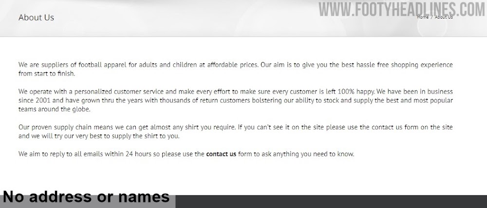 Inkonsistente Produktbilder - die von verschiedenen seriösen Seiten stammen, wie hier bei UK Soccer Shop - sind ebenfalls ein Indikator dafür, dass etwas nicht stimmen könnte.
