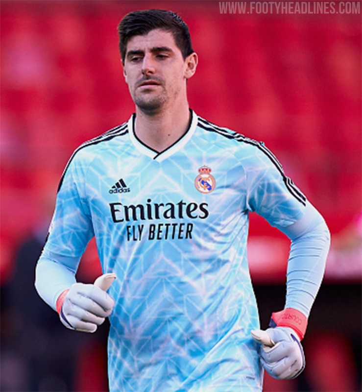 Wir werfen einen genaueren Blick auf das Torwarttrikot CF 2020 von Real Madrid aus der Humanrace-Kollektion, das Thibaut Courtois im Spiel La Liga Santander gegen den FC Sevilla am Samstag getragen hat.